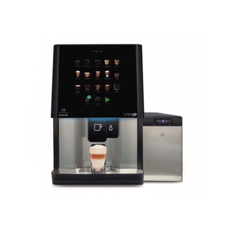 contactless payment options, fresh milk systems, eco/sustainable models, custom branding, multiple beverage selection (coffee, tea, hot chocolate), filtration & water heating efficiency.